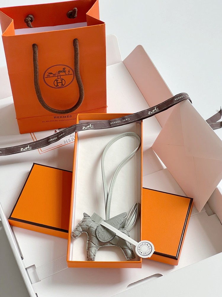 에르메스 로데오 참 엘리게이터 스킨 라이트그레이